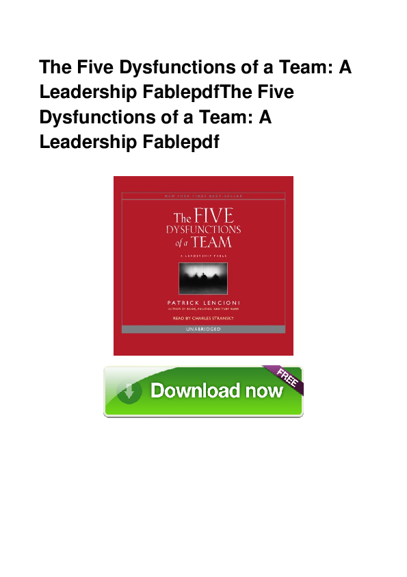 A Leadership Fable PDF book by Patrick Lencioni Read Online or Free Download in ePUB PDF or MOBI eBooks. The FIVE Dysfunctions of a Team by Patrick Lencioni Members of dysfunctional teams. The FIVE Dysfunctions of a Team by Patrick Lencioni Members of dysfunctional teams.